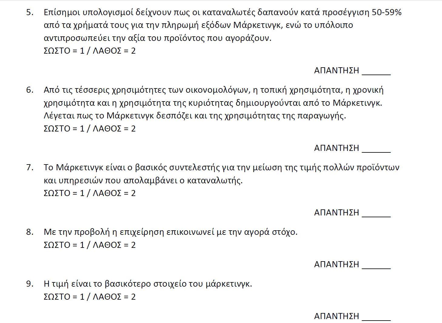 - απαντήσεις των ερωτήσεων